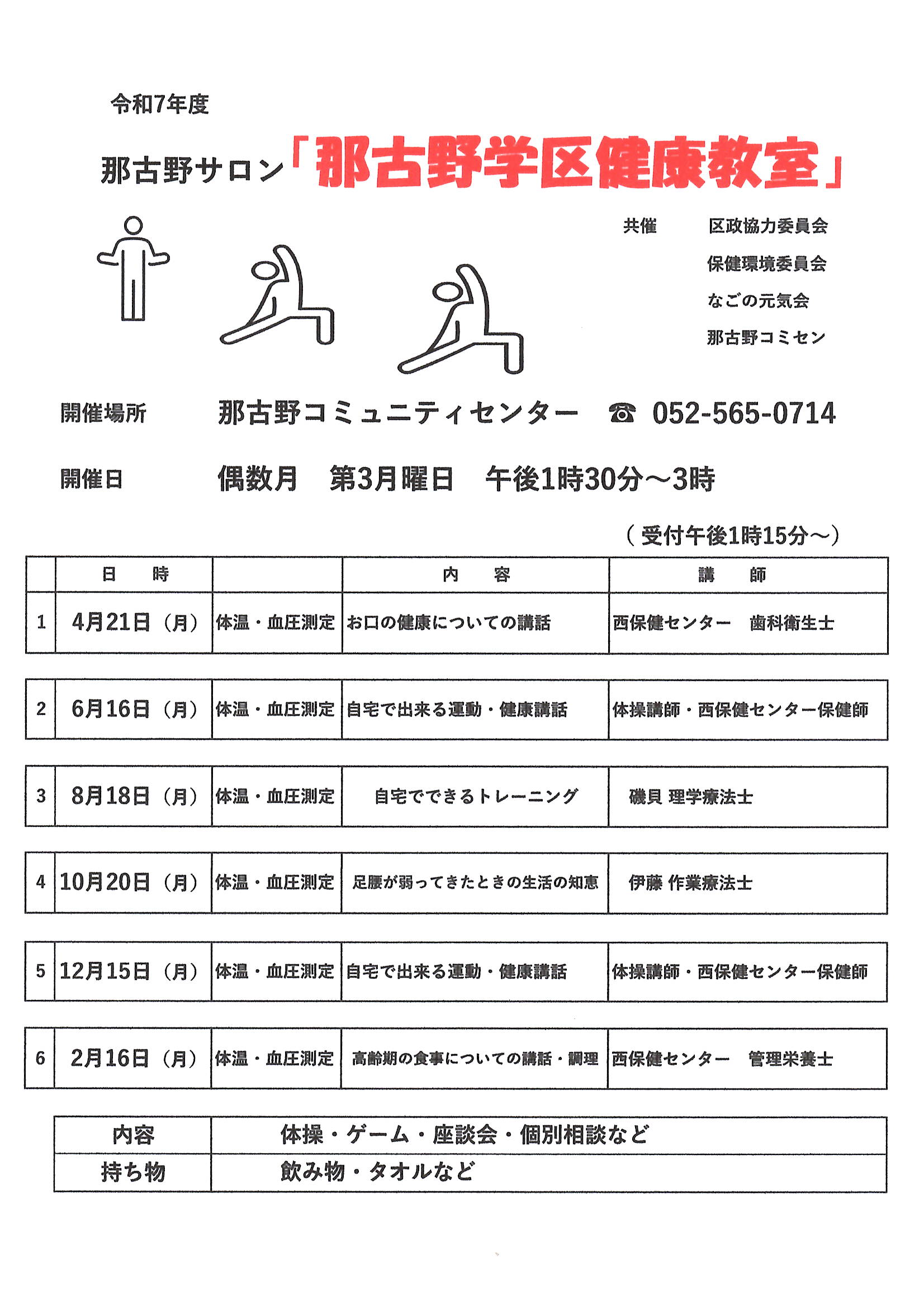 - 2025/09/22 区政協力委員会 令和7年度「健康教室」の予定表を更新しました。