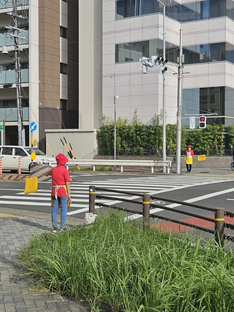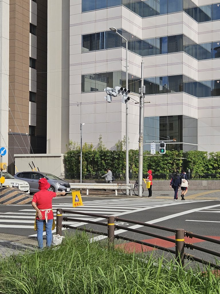 菊井交差点にて9月26日に一斉大監視を行いました。また、休日を除き毎月20日の朝交通当番を行って歩行者の方々の安全を見守っています。