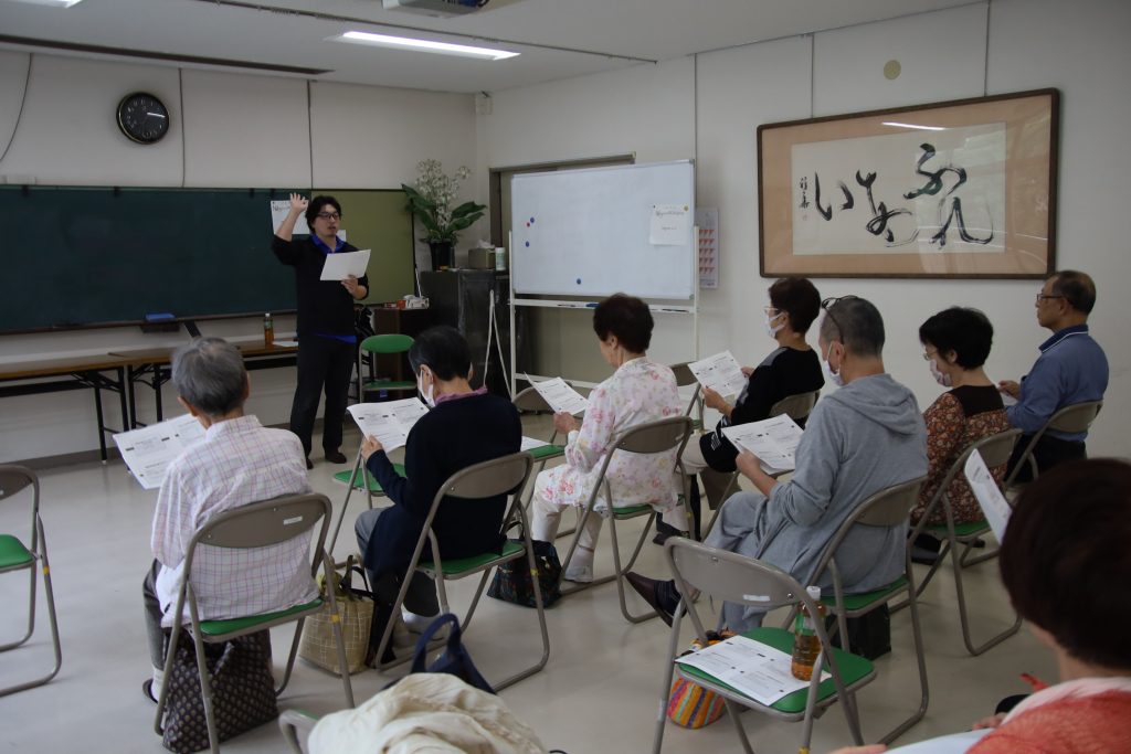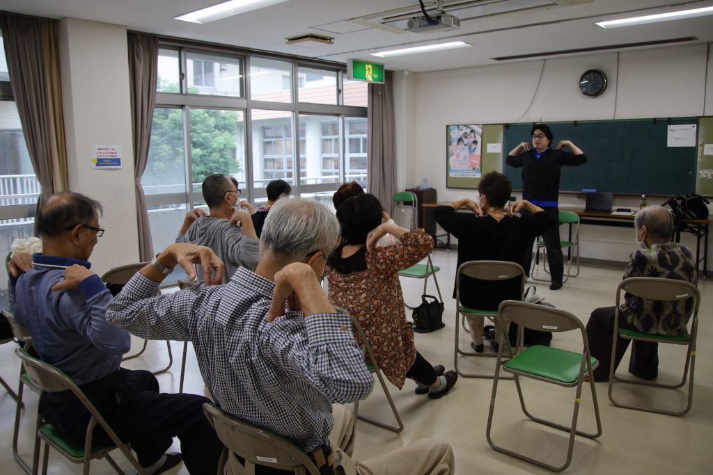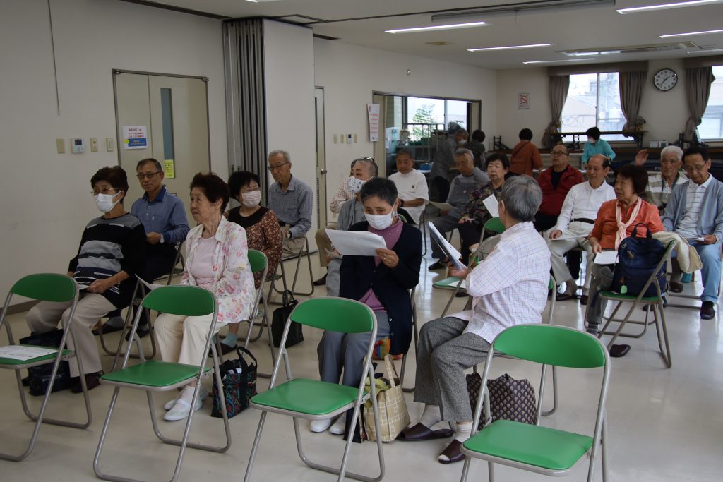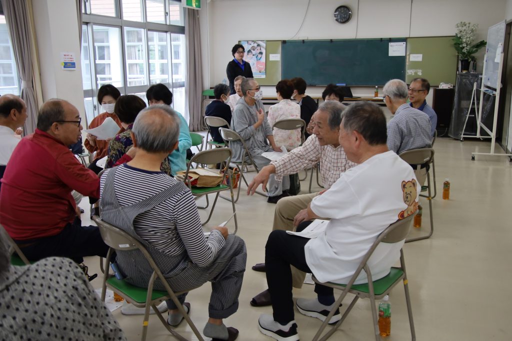 10月20日(月)今年度4回目の「那古野学区健康教室」を開催しました。今回は 訪問看護ステーション高畑「みんなのかかりつけ」より 作業療法士の伊藤嘉希様をお招きし「足腰が弱くなってきたときの生活の知恵」をテーマに「身の回りの動作・生活の中にも体を動かす機会や 健康寿命を延ばす方法が有る」事を学びました。