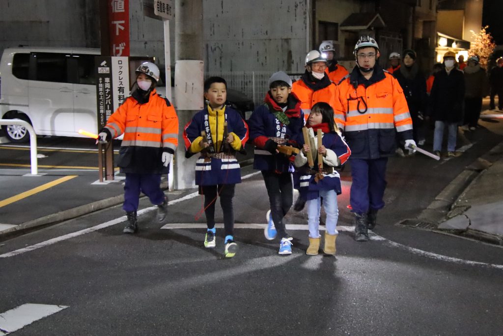 年の瀬もおしせまり今年も「年末特別消防警戒」の期間(12月26日~12月29日)に入りました。 消防団では「防火の意識を高める」為に学区を巡回し「火の用心」を呼びかけています。 本日は消防団が「子ども会」のメンバーと学区巡回をしました。 その後 消防団20名以下連絡協議会(区政・民生児童・保健環境・元気会・PTA・子ども会・なごのキャンパス・女性会)の メンバー及びお子様11名総勢71名が林西消防署長の「激励巡視」を受けました。