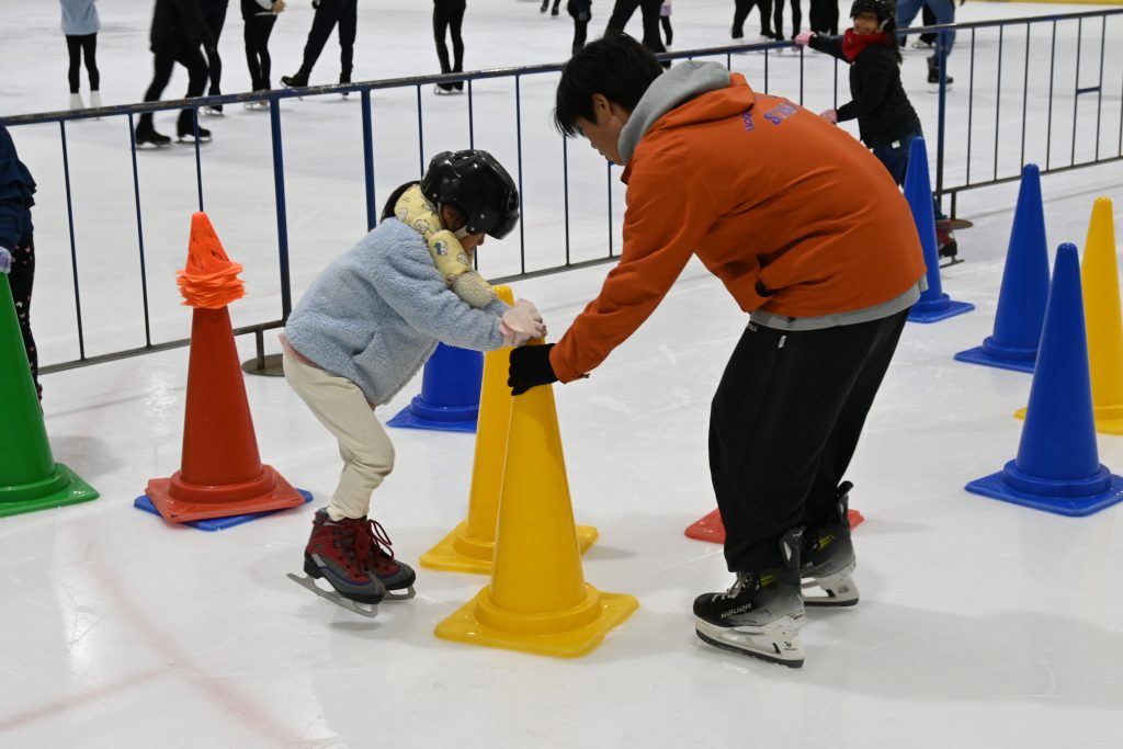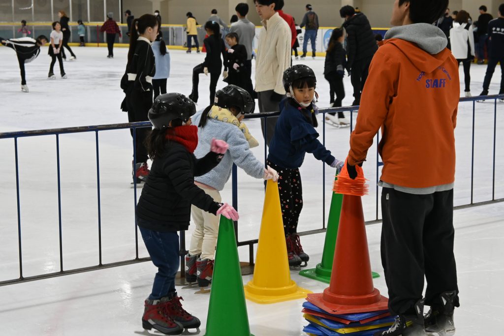 スケートが初めての子供たちも多かったのでスケート教室30分間参加してから、その後はフリー滑走で思う存分滑ってもらいました。