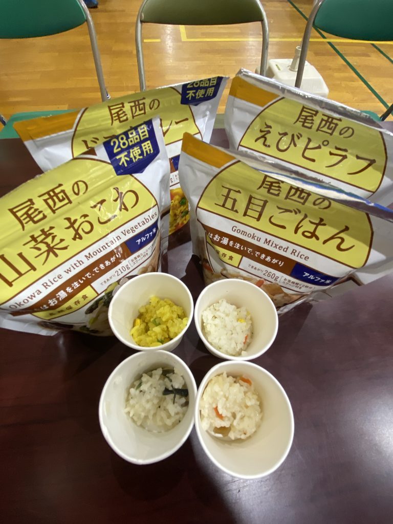 炊き出しはフリーズドライのご飯を提供。ご来場された皆様に、さまざまな味を試していただきました。
