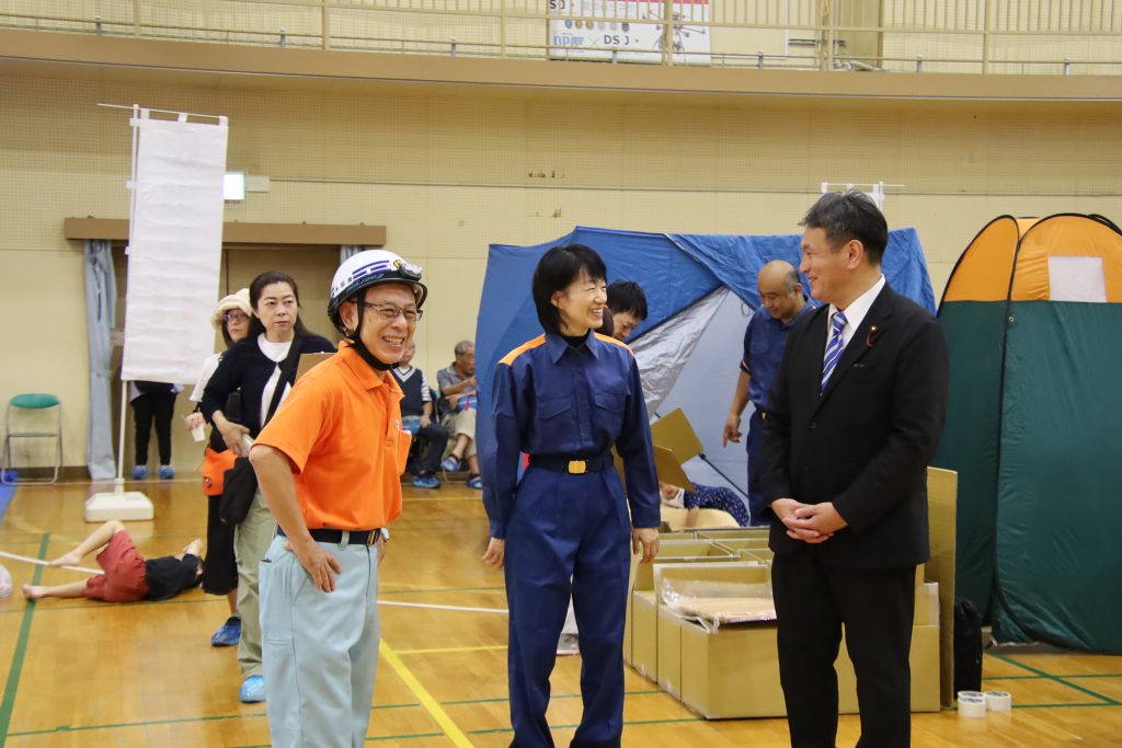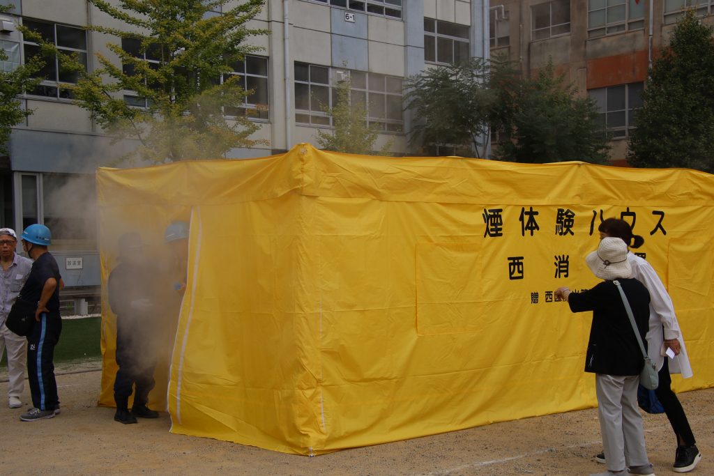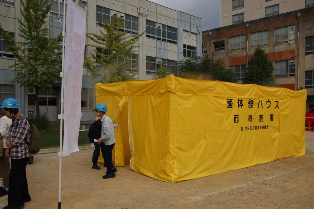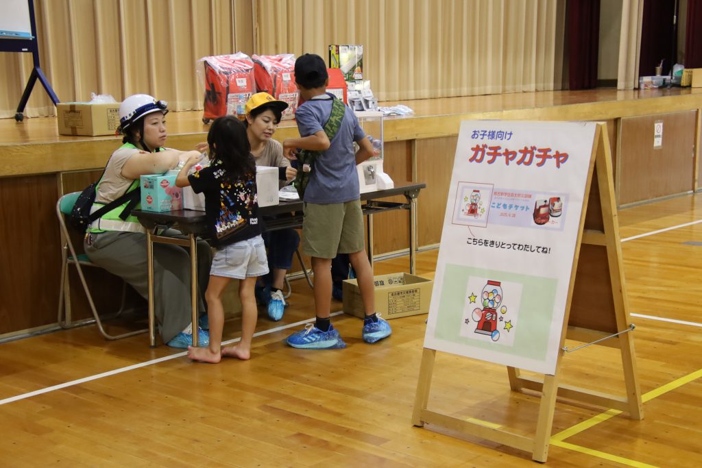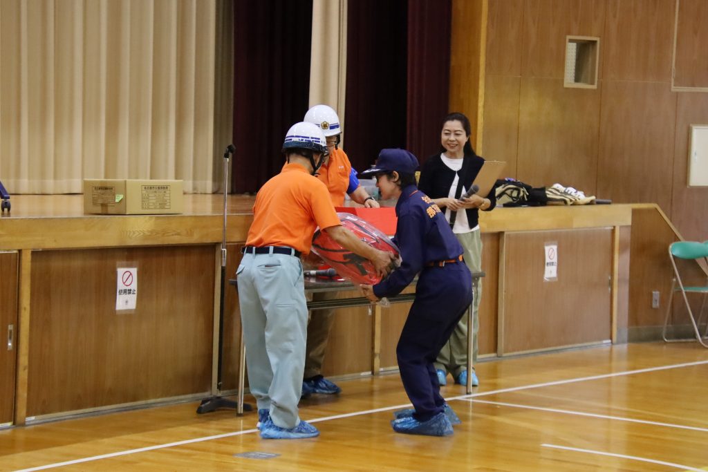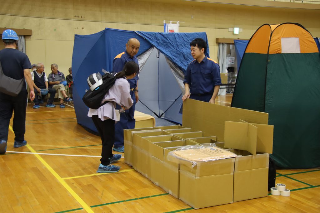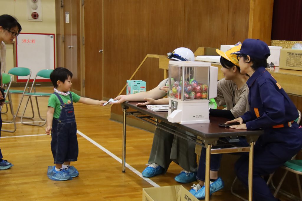 今回の訓練では「家族で体験」をテーマに名古屋市消防局より煙道体験や参加した子どもさんへのプレゼントまた西区役所より段ボールベットの取り扱いなどのご協力を賜り